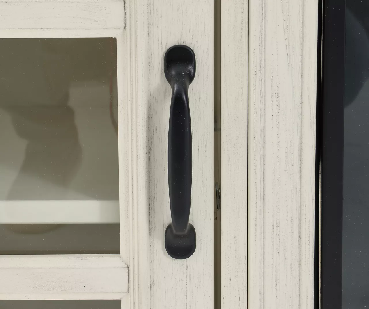 - Window pane storage shelves hold DVDs, books or gaming components