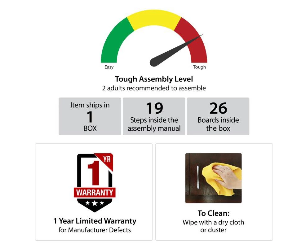 - Made of laminated MDF and particleboard, the black finish pairs with the metal accents for a trendy modern industrial look