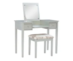 Laura 2-Piece Walnut & Beige 6-Drawer Tilting Mirror Vanity Set