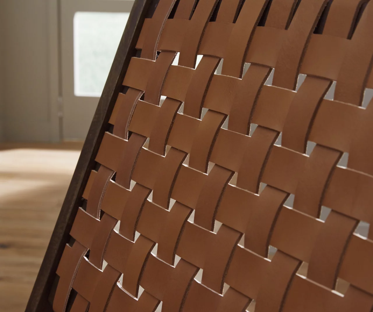 On-trend and exceedingly stylish, the Fayme mid-century modern lounge chair is sure to be hit with your contemporary home. Featuring a solid wood armless frame in dark brown finish with leather strip woven back and seat in camel-tone basket weave pattern, this chair will revolutionize your home’s aesthetic.