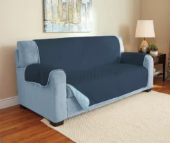 Navy & Light Blue Microfiber Reversible Sofa Furniture Protector