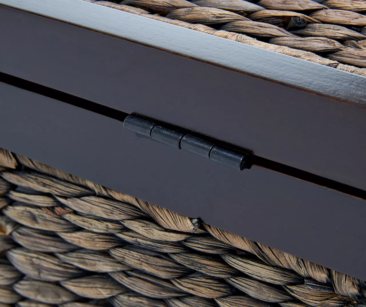 With its black distressed finish and bold frame, this wicker trunk offers both extra storage and farmhouse style in any space. Fill it with linens, blankets and pillows. The black round rings allow you to move it around any space. Interior brackets help the lid remain open while adding or] removing contents. Whether used as an ottoman or coffee table or placed at the base of your bed, it will add all the warm charms of an antique market find.