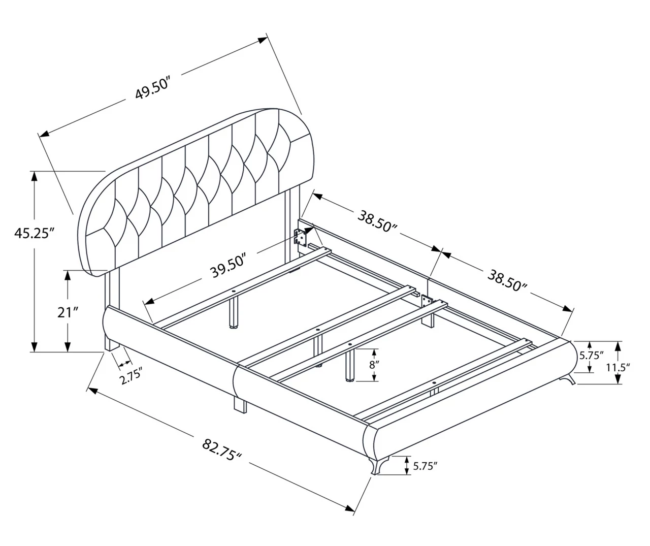 Turn your bedroom into a restful retreat with this contemporary style platform bed. Upholstered in white faux leather, the diamond tufted headboard plays contrast to the bed’s shiny chrome legs. Both headboard and footboard are padded for added comfort.